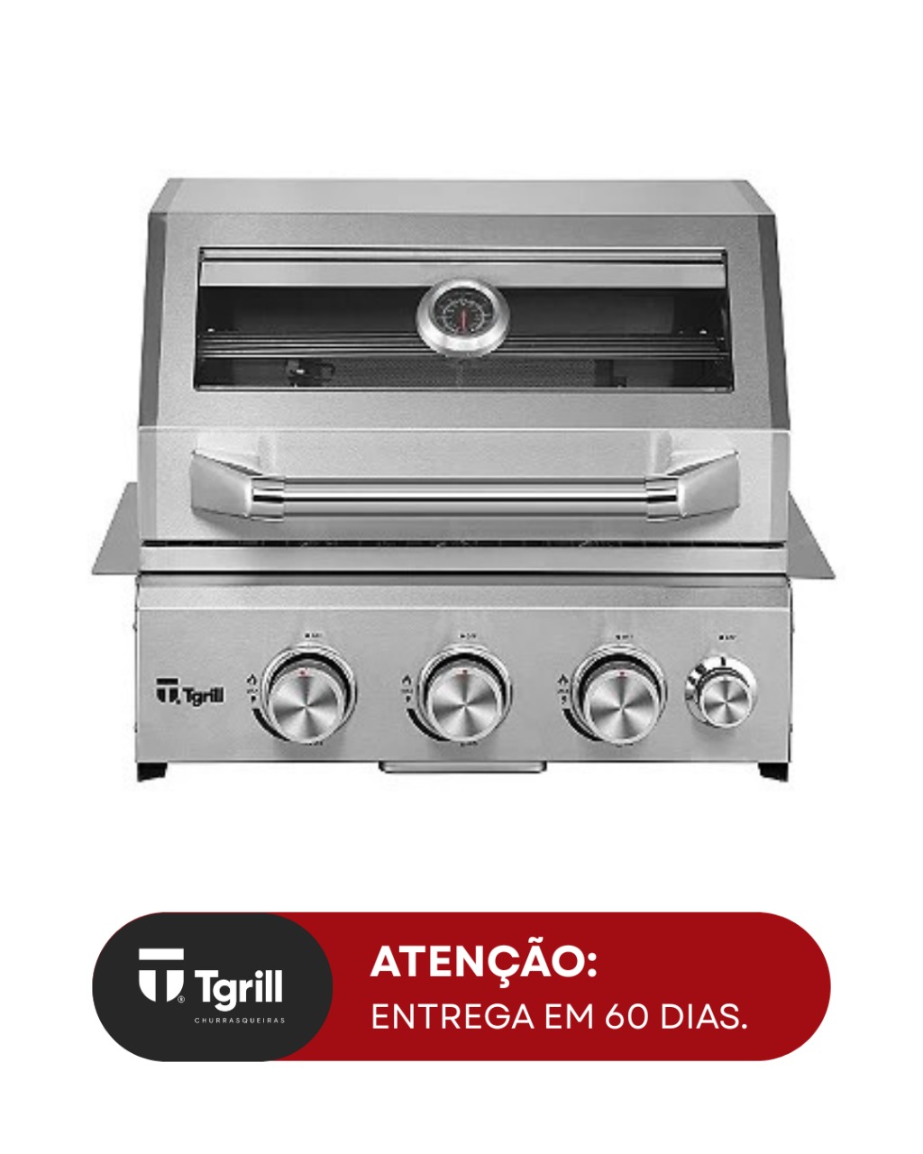 - Saída de gás atrás com engate flexível, queimadores bem como seus protetores (“chapéu”), são espaçados para quantidade maior de gordura cair direto na bandeja removível reduzindo fumaça e facilitando limpeza. Recomendamos, antes do uso, acabamento em papel alumínio na bandeja removível (para fácil limpeza).